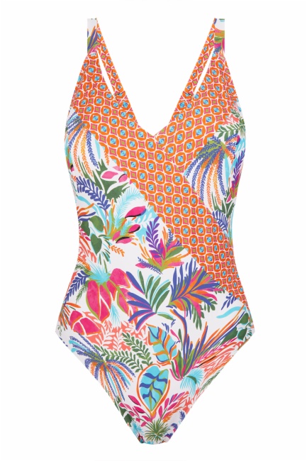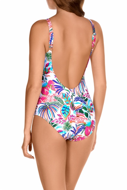 Bañador con espalda escotada, tirantes regulables y copa preformadas.